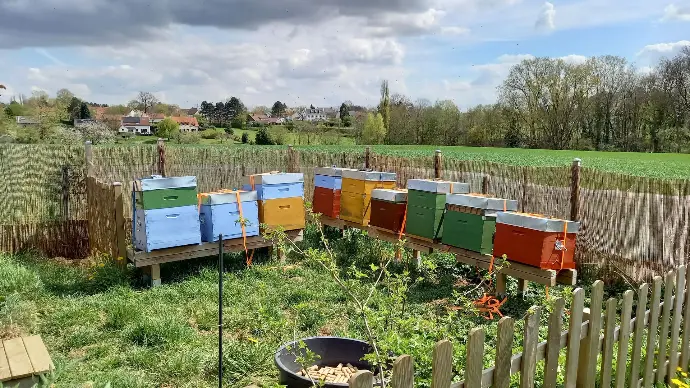de petits ruchers qui permettent à nos abeilles de trouver, dans l'environnement floral, les éléments nécessaires à leurs alimentation et bien-être. La compétition avec les autres insectes butineurs est évitée, permettant ainsi de développer un écosystème complet, préservant et favorisant l'environnement dans son ensemble.
